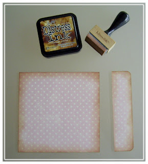 Nun werden alle Papierzuschnitte an allen Seiten gewischt. Ich habe dazu Distress Ink "Vintage Photo" verwendet.