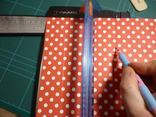 2. Rotate the paper 90 degrees to the right and score at 1.5 and 5 inches