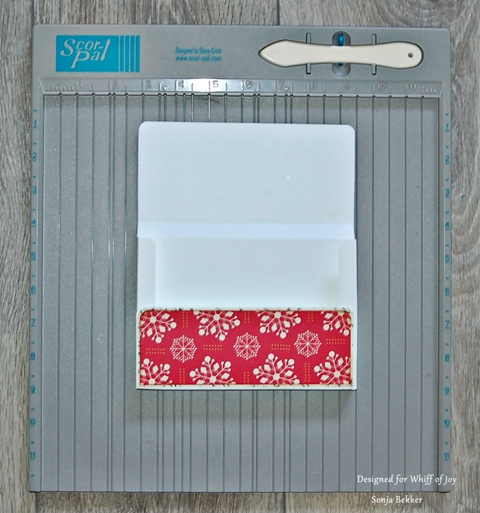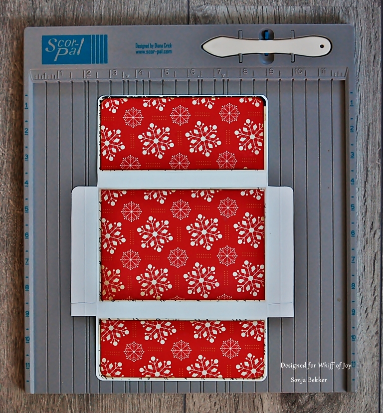 You'll need a matchbox for this treat. You can use a normal sized one or a bigger one, like I did here. But if you prefer to you can also make your own one using a cutting die or a tutorial from the www. You'll also need some cardstock or designer's paper to be wrapped around the matchbox (if you make your own one you can skip this step and just make your matchbox from the paper you like the best).