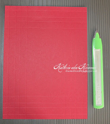 Then take the second piece of cardstock and score it at 1 cm, 2,6 cm, 11,1 cm and 12,7 cm.