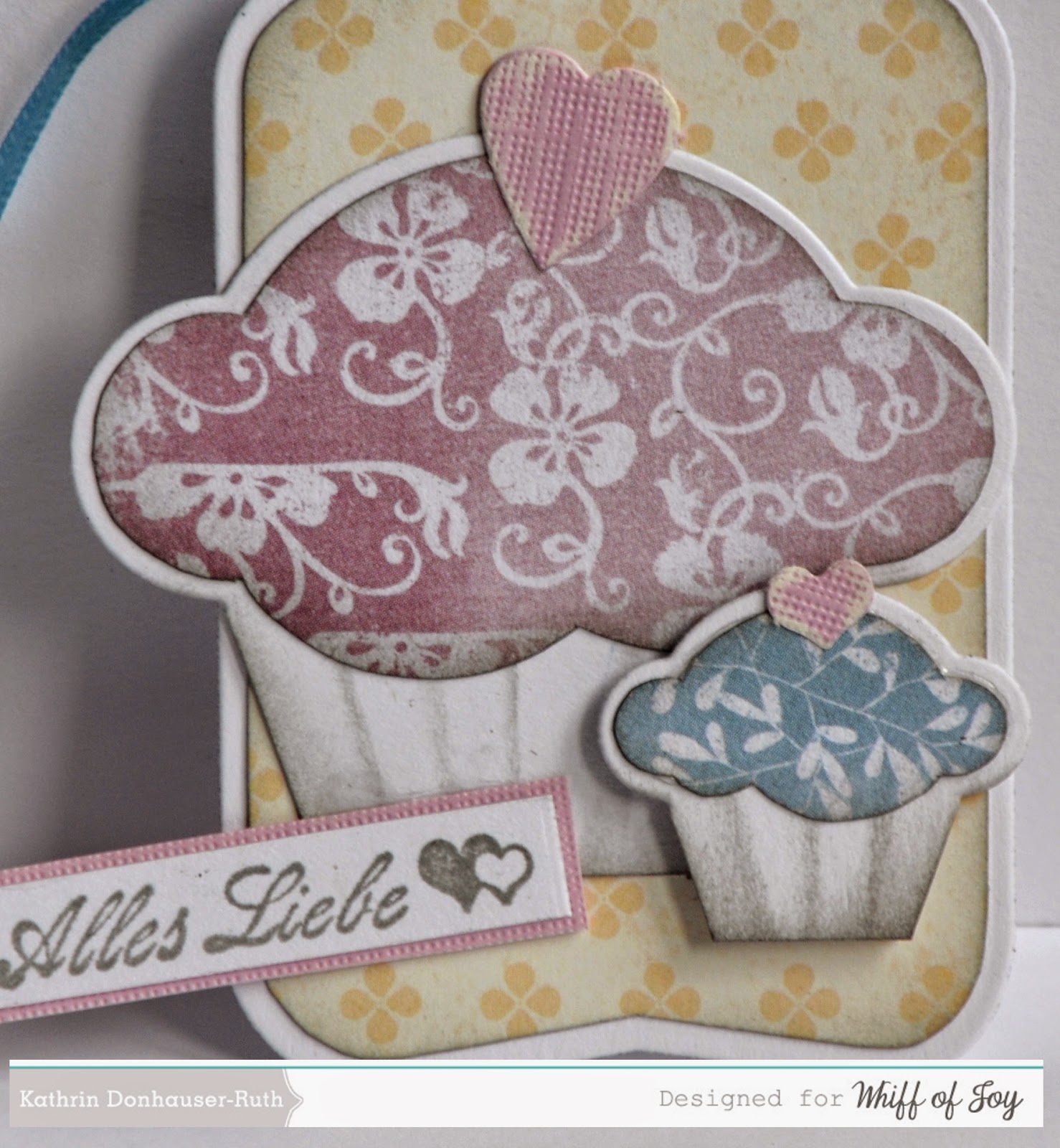 Wie, mögt Ihr jetzt fragen, von Whiff of Joy gibt es Cupcake Stanzen? Nein, gibt es nicht. Und trotzdem habe ich sie mit einer Stanze von Whiff of Joy gemacht... ;)