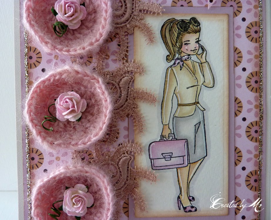 Decorate the pattern papers all done, with the stamped images and all the embellishments, before you glue it on the paper bag front.